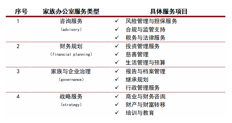 表:家族办公室的服务分类