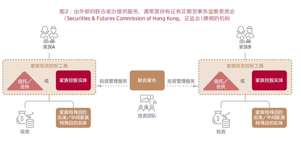 家族办公室为家族投资控权工具提供家办服务,家族投资控权工具需要向单一家族办公室支付服务费用。家控工具可以在香港或香港以外地区成立。